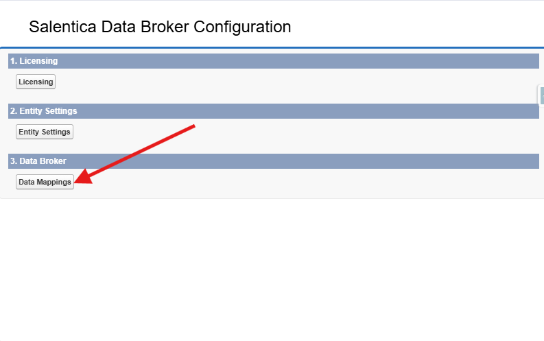 - When you click Configure, this will open a popup window, which is the configuration screen of the Data Broker installed package. In this popup, you'll click on "Data Mappings"